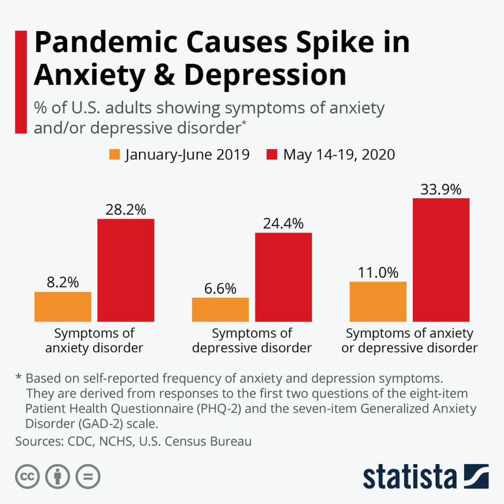 As the graph above depicts, rates of depression and anxiety have spiked significantly since Covid-19 emerged. The increase, coupled with the limitations necessary for the pandemic, makes telehealth a practical alternative for treatment.